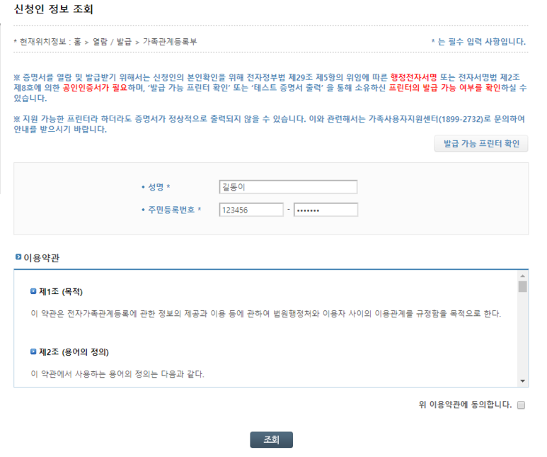 !!가족관계증명서는 로컬(컴퓨터에 직접 연결)프린터 또는 TCP/IP프린터로만 출력이 가능합니다!!