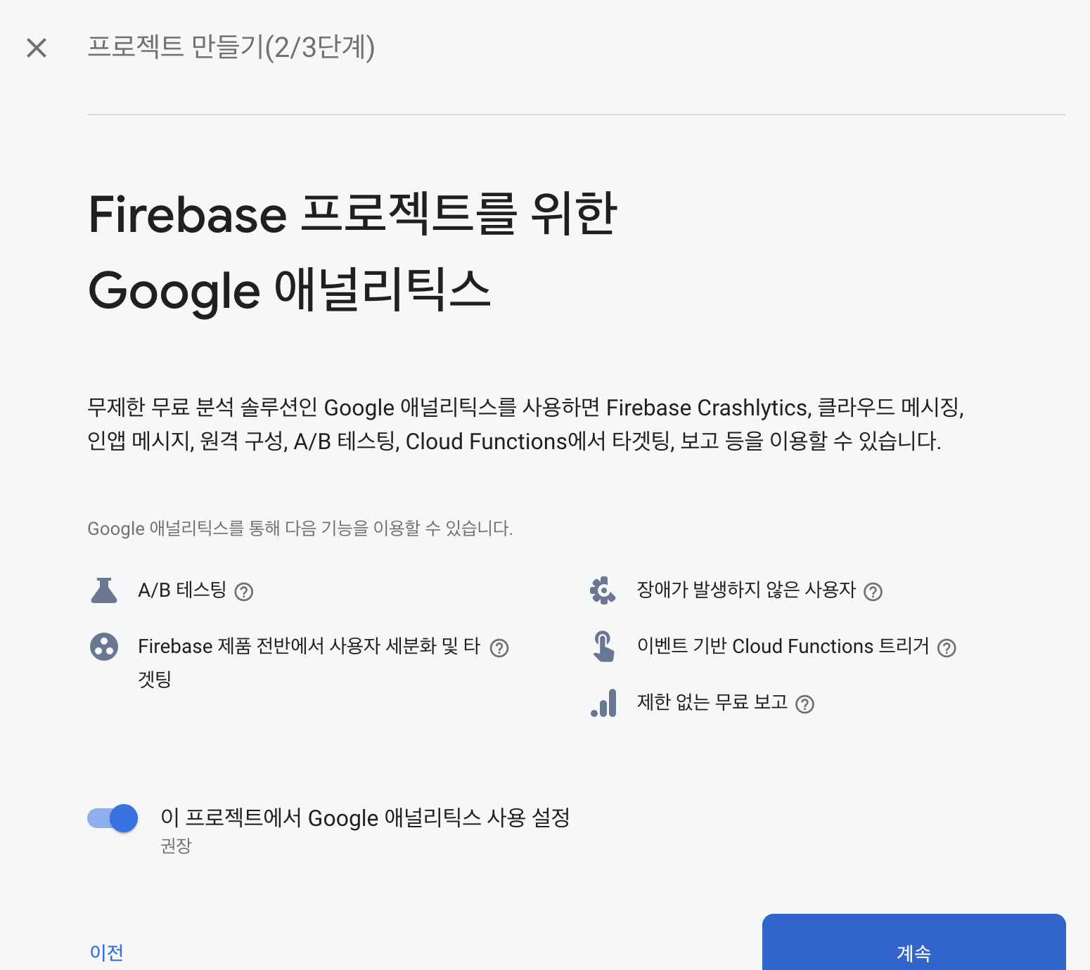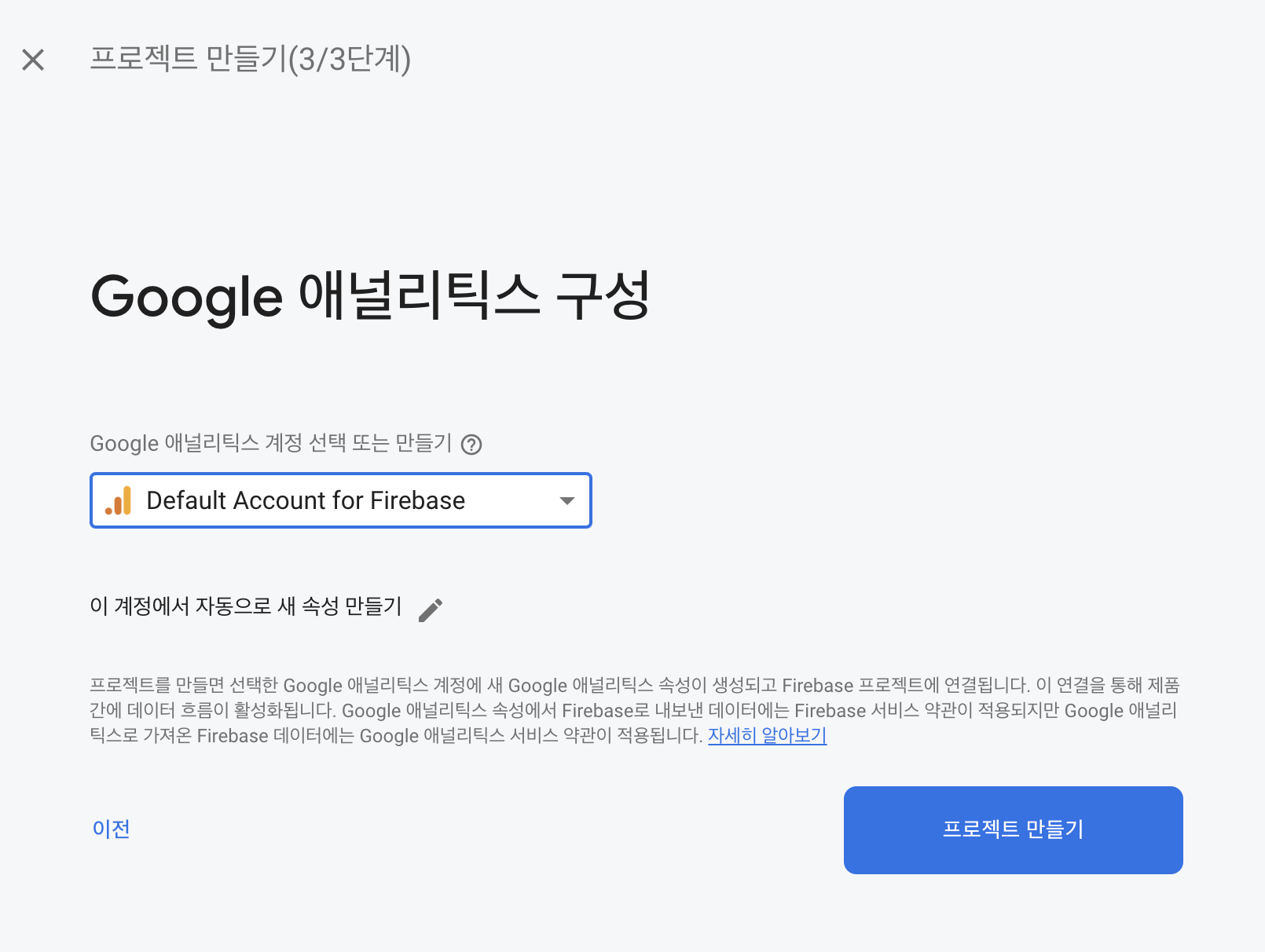 내가 생성한 firebase의 프로젝트를 선택합니다.