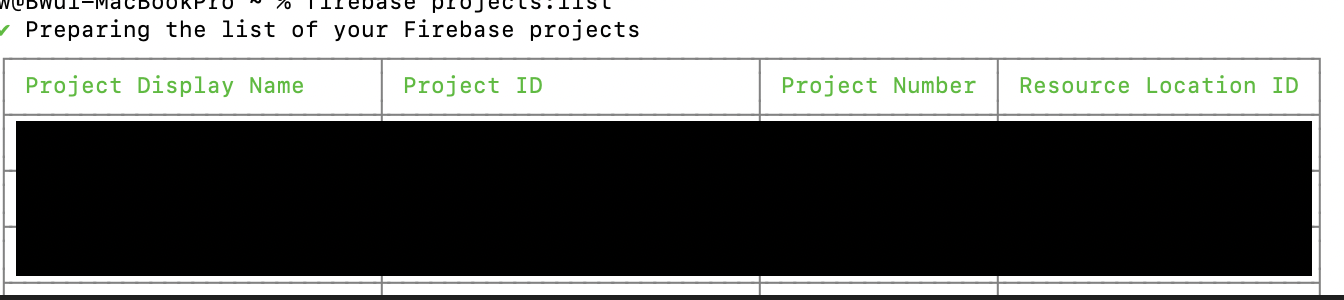 아래 명령어로 내가 로그인 한 계정의 프로젝트를 확인할 수 있습니다.