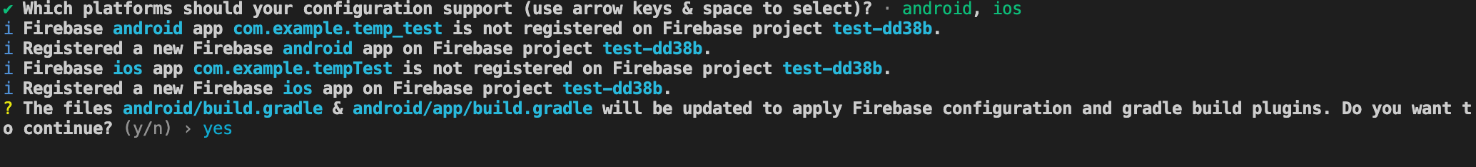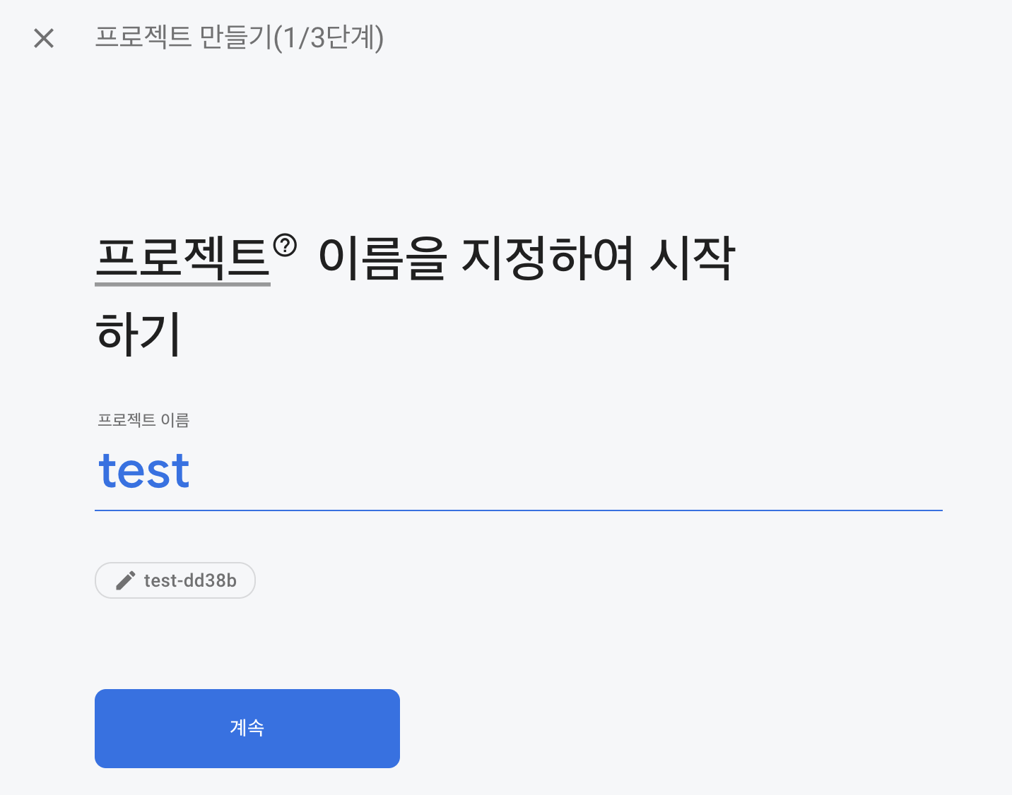 여기서 에러가 날 경우 [프로젝트 이름]에 firebase-console창에서 내가 만든 프로젝트이름 바로 밑의 회색글씨를 뒤의 문자까지 그대로 입력합니다.(ex. temp01-f8f9a)