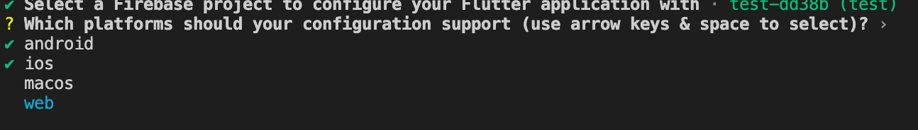위와같이 어떤 플랫폼을 이용할 것인지 나오면 지원할 플랫폼을 선택(space)하고 enter를 눌러 진행합니다.