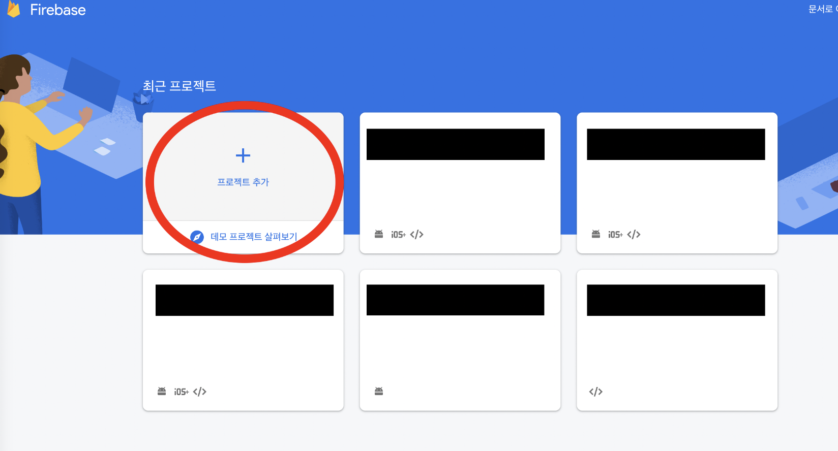 google Firebase Console사이트에서 firebase 프로젝트를 생성합니다.