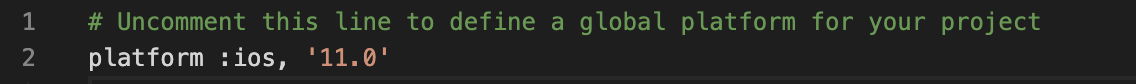# platform :ios, '11.0' 의 주석 제거(# 제거)