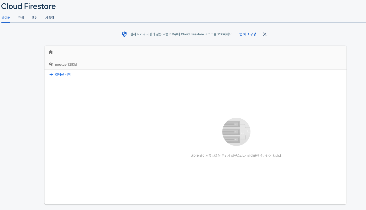 '사용 설정'을 누르고 잠시 기다리면 database 저장공간이 만들어지고, 아래와 같은 화면이 나온다면 준비가 완료된 것이다.