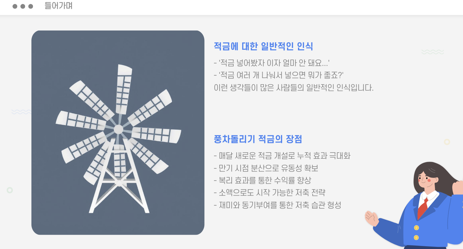 → 이름처럼 풍차처럼 돌며 적금이 매달 만기되는 구조
